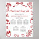 Póster Modern Red Hand Drawn Italian Pizza Seating Chart