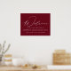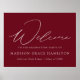 Elegante cartel de graduación con "Bienvenida" en un guión blanco moderno de caligrafía con un fondo burdeos (o color de su elección). Personalice al moderno poster de graduación agregando el nombre del graduado, el nombre de la escuela y el año de graduación. El signo de graduación de Borgoña es perfecto tanto para graduados de secundaria como universitarios.