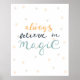 Decora la guardería de tu pequeño precioso con este adorable cartel tipográfico siempre cree en la magia sobre un fondo estrellado azul claro. © Julie McIver