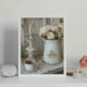Fotografía moderna de un frasco con flores sobre una mesa con velas de estilo chic Shabby. La obra de arte se vende sin marco.
