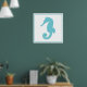 Póster Moderno Océano costero Blue Seahorse Silhouettte