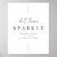 Invite a los huéspedes a tomar un chispeante y a unirse a usted en el exterior para un espectacular paseo. El moderno letrero minimalista boda presenta "sparkler sendoff" en una elegante combinación de escritura manuscrita y letras serif clásicas. Personalizar con los detalles de su desvío de brillo (como el momento y la ubicación) debajo. El diseño se completa con detalles de línea vertical delgada. Cara de colores: Ash, un negro suave.
