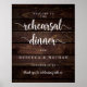 Moderno Rústico, cartel de bienvenida a la cena de ensayo de boda, con tema de madera oscura de cabaña.
