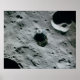 Los módulos de comando y servicio Apolo 16 (CSM), vistos desde el módulo lunar (LM, fuera de vista) sobre el terreno en la parte exterior lunar. Las dos naves espaciales acababan de desacoplarse. La LM y el CSM estaban fuera de comunicación en el momento de la exposición de esta fotografía, pero poco después adquirieron la señal al moverse separadamente al lado de la tierra de la luna.
