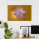 Una sola flor silvestre Mojave Aster, con sus pétalos púrpuras sobre un fondo amarillo otoño.