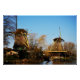 Ouderwetse molens in het Hollandse landschap dat energie uit de wind haalt en een oude cultuur laat zien van Nederland. Aan de waterkant een traditie die Europees nostalgisch gevoel geeft van oude bouwwerken.