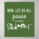 Celebremos la ciencia y el nerviosismo con un poster verde que presenta un juego de palabras de Now, Hagamos una pausa por un momento de ciencia.