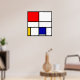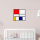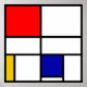Arte mondrónico: arte abstracto del siglo XX con tres colores primarios (rojo, azul y amarillo), tres valores primarios (negro, blanco y gris) y dos direcciones primarias (horizontal y vertical).