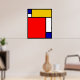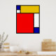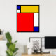 Arte mondrónico: arte abstracto del siglo XX con tres colores primarios (rojo, azul y amarillo), tres valores primarios (negro, blanco y gris) y dos direcciones primarias (horizontal y vertical).