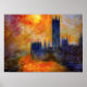 Casas Monet del Parlamento y poster del atardecer. Óleo sobre lienzo de 1903. Monet pintó las Casas del Parlamento en diferentes momentos del día y del año. Esta entrega en particular es una de sus más arrestantes y violentas, con naranjas profundos, púrpura, rojos y amarillos flameando sobre el Támesis. Un gran regalo para los fanáticos de Claude Monet, el impresionismo, los paisajes urbanos y el arte francés.