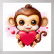 Póster Mono Bebé Adorable Sosteniendo un Corazón Rojo