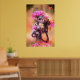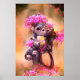 Un lindo mono bebé rodeado de flores rosas. Wombo Dream AI y la colaboración de artistas.