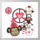 Pancartas de paz con marrón rosa y chocolate, corazones y monos pequeños, uno con una gorra rosa en camisetas de los Monos de la Paz, imanes, tarjetas, pegatinas, mousepads, bolsillos, bolsillos, bolsitas, almohadas, relojes de pared y más!