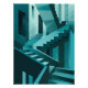 Póster Monochromatic Turquoise Isometric Staircase Maze