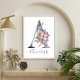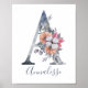 Póster Monograma A de acuarela floral azul con nombre