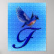 Letra monograma F con un bonito diseño de pájaro azul por Susan.