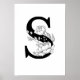 Elegante poster de monograma S con flores y vidas. Ilustracion botánico blanco y negro. La carta inicial poster viveros, habitaciones, parte de la decoración de la casa. Idea de regalo personalizada.