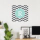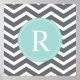 Personalizar este vibrante patrón de chevron color gris / gris, blanco y menta de color turquesa verde azulado y diseño de monograma con tu diseño inicial.