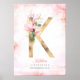 Póster Monograma de letra K hojas doradas magnolia floral