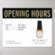 Se coordina con el Monograma de Salon Nail sobre la plantilla de tarjetas de visita Nail Polaco Purpurina de oro antes de las 12.00 horas. Este glamoroso diseño poster de salón de uñas presenta su inicial en un hermoso tipo de letra de guión centrado en una falsa botella de esmalte de uñas purpurina dorado para un logotipo instantáneo. Un titular purpurina de oro que hace juego explica "Horas de apertura" para su negocio. Utilice este poster para dar señales en su salón. Arte y diseño © 1201AM CREATIVE | www.1201am.com