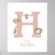 Póster Monograma H Cute Safari Animales Muro de Enfermerí