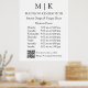 Moderno Rótulo Poster Horas de Negocios Minimalistas. Blanco y negro o elige tus colores personalizados. Agregue su sitio web o dirección web de medios sociales al código de exploración QR. Perfecto para comercios, pequeños comercios, salones, spas, panaderías, cafés, restaurantes, bares y más. Fácil de personalizar con sus iniciales de monograma, nombre comercial e información, fotos, slogan o incluso añadir su logotipo o diseño personal de marca.