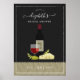Póster de bienvenida elegante y moderno en rojo burdeos para despedida de soltera con vino y queso, con un monograma caprichoso personalizable a los detalles de su evento.