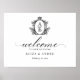 Escudo de Monograma Blanco y Negro, poster de bienvenida boda. Escudo de monograma de arte barroco Regency-Era de inspiración vintage. Características, diseño elegante de tipografía en blanco y negro.