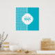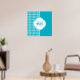 Poster azul y turquesa de moda con patas traseras en rayas verticales. Personalice este diseño contemporáneo a la moda, a la sombra del agua y el turquesa, añadiendo el nombre y las iniciales del monograma de la joven de moda.