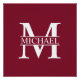 Regalos personalizados de Monograma y Nombre con monograma blanco personalizado en estilo clásico de tipo de letra serif con caja de nombre en medio del monograma sobre fondo rojo burdeos. Perfecto como decoradores de casa, regalos para el hogar, regalos para la familia, recién casados y más.