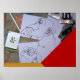 Saludos no convencionales del año de los monos con dibujos surrealistas de dos monos. Es una fotografía de mi PDD en mi escritorio con otros objetos. Se añade un cuadrado rojo y una línea dorada para dar a esta composición 2 colores tradicionales en China. Lienzo y tarjetas de felicitación disponibles.