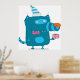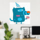 Póster Monstruo del Personalizado azul con Fiesta Gorra