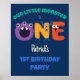 Monstruos Alphabet Primer Cumpleaños Nuestro Rótulo Poster Fiesta Pequeño. Suministros adorables de fiesta de alfabeto monstruo. Monstruos del primer cumpleaños.