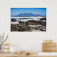 Montaña de mesa, Ciudad del Cabo con playa y rocas en primer plano