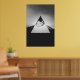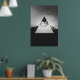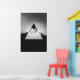 Manipulación digital geométrica de majestuosa montaña blanca y negra reflejada en un triángulo.