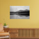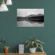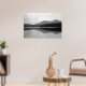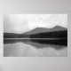 Un entorno tranquilo y sereno.la imagen de espejo de las montañas y los árboles reflejada en un estanque en las Montañas Blancas de Nuevo Hampshire forma un patrón abstracto de negro, blanco y gris. Este es un afiche de viajes de fotografía de arte elegante y simple.