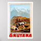 Es una imagen serena de Suiza y de las vacas en los pastos. Las montañas están al fondo. Es vintage de un tren francés que ya no existe.