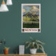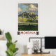 Este vintage poster de viajes muestra un motor de vapor con coches de pasajeros que recorren las montañas de Absaroka en Montana.