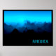 Hermoso paisaje minimalista azul sombra de la silueta pop arte estilo viaje poster de América. Puede cambiar el texto. Montañas.
