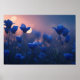 Póster Montañas geométricas azules al atardecer