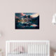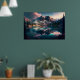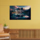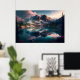 Esta huella generada por IA consta de majestuosas montañas, lago espejo, luz suave, texturas naturales, colores vibrantes con un resplandor de neón, vista de gran angular, nubes detalladas y follaje vibrante. por 1bizchoice todos los derechos reservados.