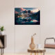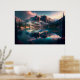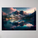 Póster Montañas majestuosas que reflejan el lago con luz