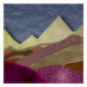 Un paisaje abstracto con colores y texturas únicos que muestran una escena montañosa en tonos morados, tostados, beige y marrón.