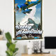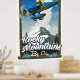 Afiche de viajes estilo vintage de Rocky Mountains con un viejo avión de apoyo vintage.