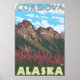 Fuegos artificiales y montañas - Córdoba, Alaska - Poster de Viajes Vintage fue creado en 2007. Esta imagen muestra escenas de Córdova, AK.