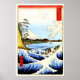 Póster Monte Fuji, rompiendo olas en el mar, japonés