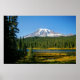 La transición del verano al otoño en el lago Reflection con el Monte Rainier en el fondo. El cielo azul brillante es un poco inusual desde nuestros días nublados normales.