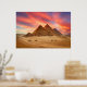 Esta asombrosa foto de Getty Images presenta Las grandes pirámides y una caravana de camellos frente a las pirámides egipcias, Giza, Egipto.