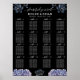 A bold and sophisticated Seating Chart featuring dramatic dusty blue and grey floral illustrations against a stark black background. The crisp white typography and classic layout set an elegant, moody tone. Perfect for a formal evening or a sophisticated wedding.