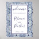 Cartel de bienvenida de boda con un marco de azulejos portugueses. Encuentre artículos coincidentes en nuestra tienda o contáctenos.
